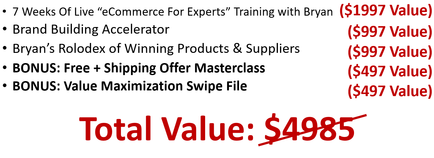 When you join the “eCommerce For Experts Blueprint" today I’m going to show you the exact system we use to build eCommerce stores for authorities and experts. This is an opportunity to take advantage of one of the hottest business opportunities to come around in decades. Best of all, it bolts right on to your existing expert business, builds your bond with your clients, helps you bring more clients into your programs and requires absolutely no product shipping or fulfillment on your end.